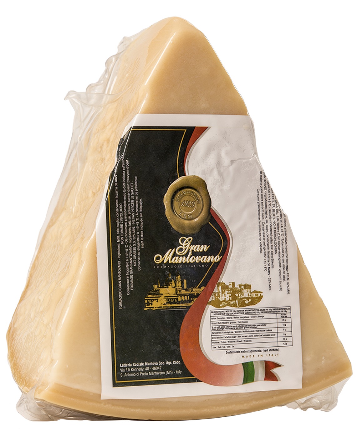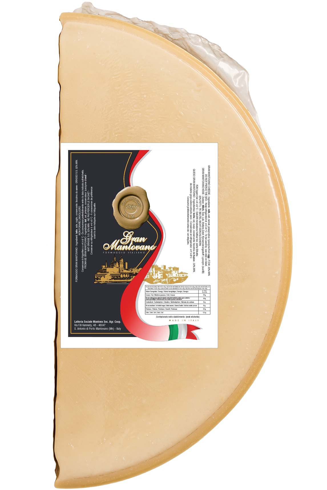 Disponibile anche con la caratteristica “crosta nera“, è un formaggio da tavola e da grattugia di eccellente qualità. Ideale come condimento di un primo piatto o come seconda portata, il nostro Gran Mantovano è tutto da scoprire.